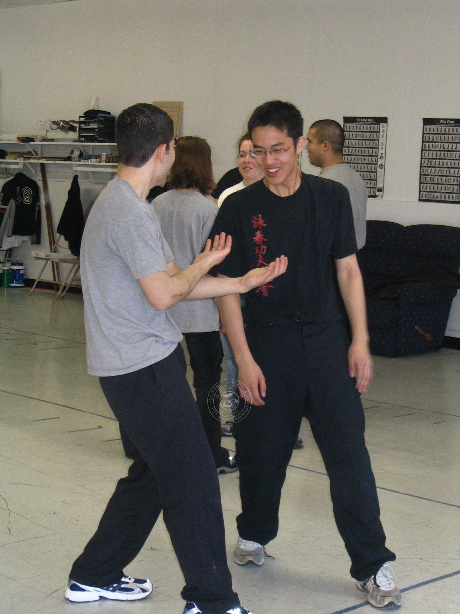 | Jeff Hsu and David Kowsari work chum kiu. |